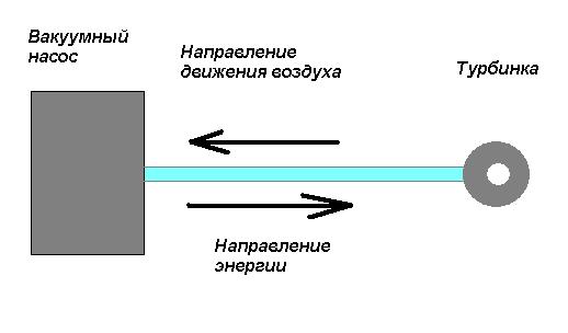 Omega25 Воздух движется от турбинки к вакуумному насосу, а энергия передается от насоса к турбинке