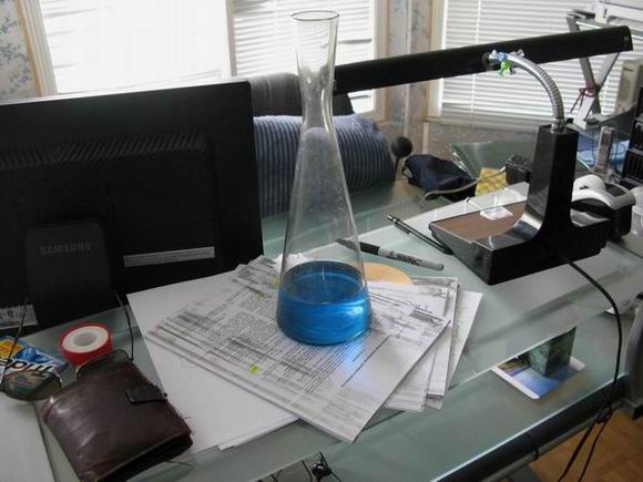 - Хуже не бывает (см. картинку с синей жидкостью на моём столе - Гидрат аммония NH4OH - нашатырь).