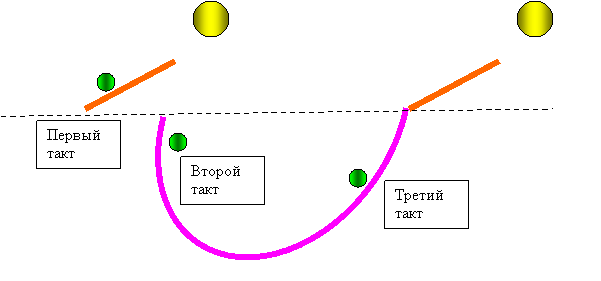 6. Последовательное движение малого шарика вверх по наклонной плоскости вверх, а затем падение вниз (без опоры на наклонную плоскость) обеспечивает цикличную работу устройства на два такта. (УМ: «…в устройстве циклично используются две формы потенциальной энергии консервативных сил…»; «…МАЛОЗАТРАТНО, периодически отключая (ослабляя) действие поля сил одной формы энергии и включая (усиливая) действие поля сил другой формы энергии»)