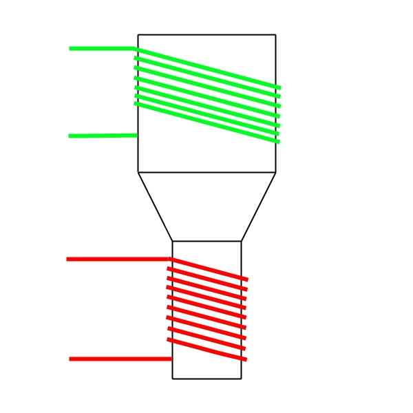 каково взаимовлияние двух катушек находящихся на одном сердечнике имеющего переменное сечение?