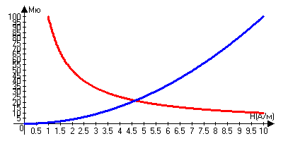 Зависимость Мю(H) или тока подмагничивания имеет вид гиперболы f=k/x на пристёгнутом графике (красным). Дополнительно вставил в график функцию f=x^2 (синим). Если подобрать коэффициенты и перемножить одну функцию на другую, - получишь функцию вида f=k, то-есть прямую линию горизонтальную оси "х".
