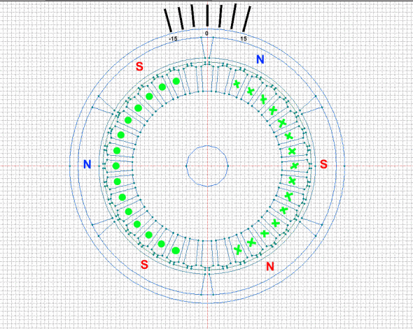 Алекс, труд конечно, титанический, но что-то вызывает неопределённое беспокойство...Разберись со своей конструкцией в таком ключе: параллельные токи притягиваются и отталкиваются в зависимости от их направлений, тогда не надо будет "линии поля" рисовать. И когда механический момент от механической нагрузки на валу будет, представь, что будет происходить с токами - они полюбасу