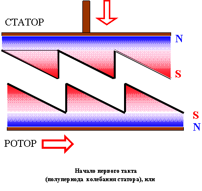 «Если время полупериода колебания модуля ротора (второй такт) на 0У больше времени перемещения (вращения) модуля на 0Х, то первый такт (второй полупериод колебания) закончится; закончится со сдвигом на один «зубец» статора, пройдя путь (0Х+0Х).» на Яндекс.Фотках