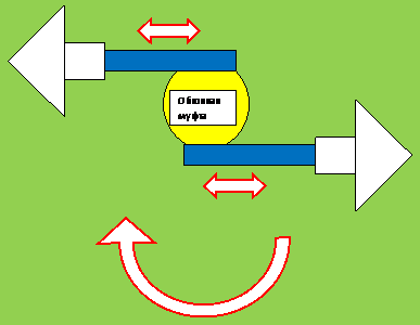 Можно обойтись и без обгонной муфты для передачи момента сил на ускорение платформы. Например, при выдвижении у модулей тяг из-за работы радиального "всплытия" поплавков, это усилие мы направим на подтягивание масс модулей радиально к центру вращения платформы. Тогда, эта работа поплавков будет превращаться силой Кориолиса в энергию вращения платформы.