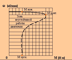 Малый пусковой момент вынуждает конструкторов и специалистов по эксплуатации оборудования, завышать установочную мощность АД в 1,5 - 2 раза, а в случаях тяжелого пуска в 3 - 4 раза. Сразу после пуска, такой электродвигатель попадает в зону низких КПД и коэффициента мощности. Происходит большое, по отношению к выполняемой работе, потребление электроэнергии.
