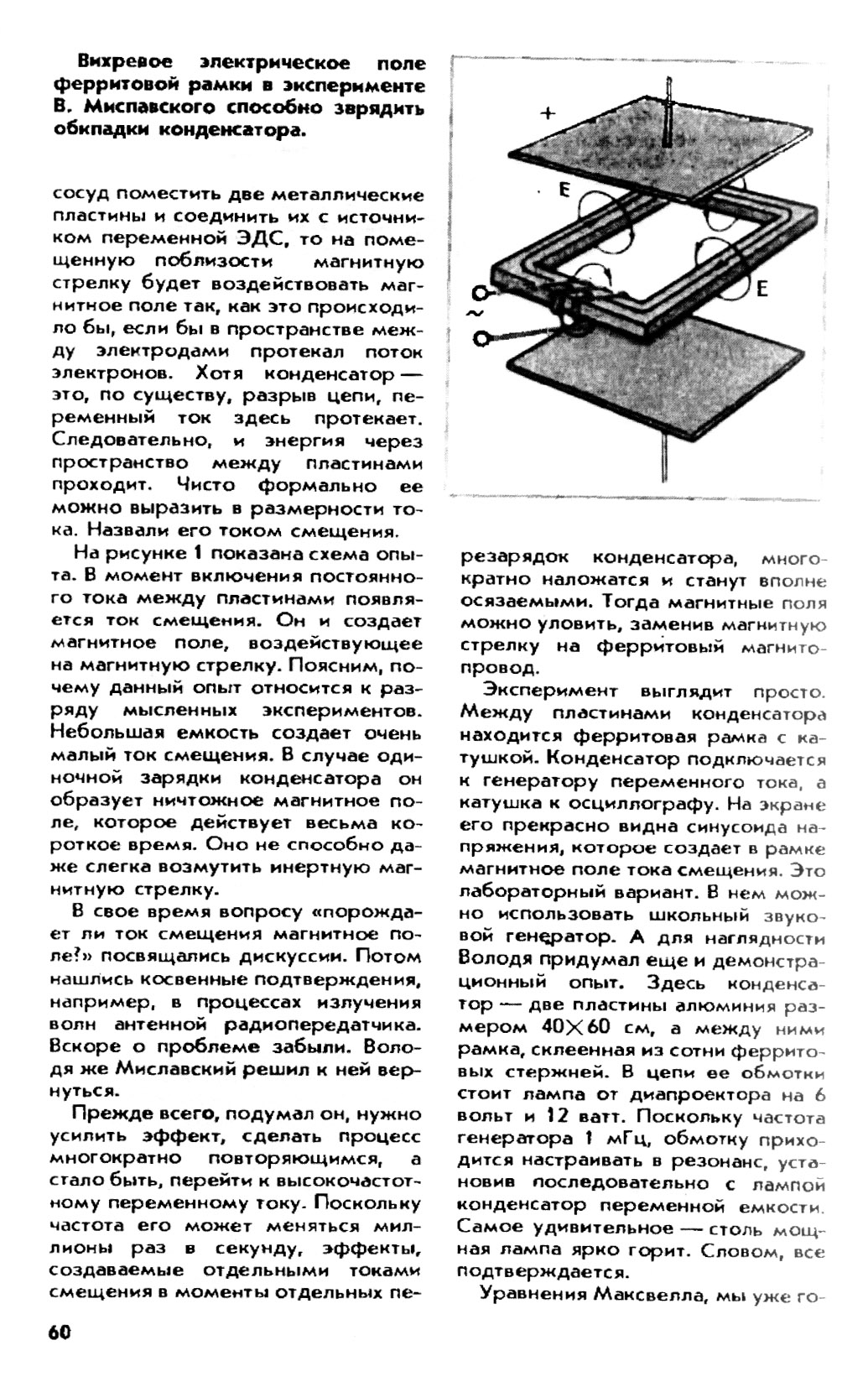 Также не забудьте учесть реальный ток по пластинам в моменты перезарядки и магнитное поле, которое этот ток создаст. В действительности, этот опыт не очень простой.