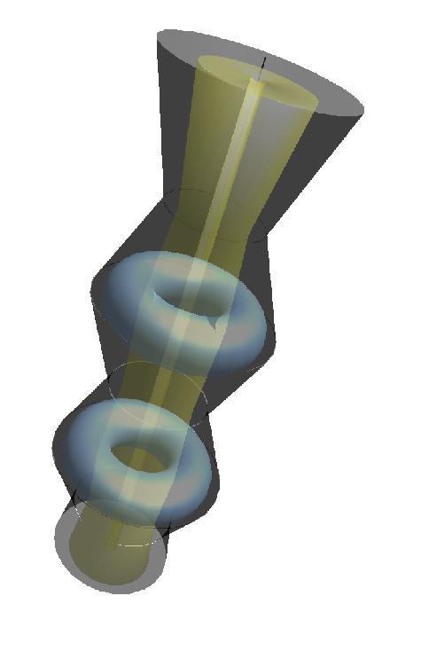 Это гипотеза Власова, я с ней согласен. На рисунке, якобы, преображённый насадок Шестеренко, а там торообразный ВИХРЬ. При этом, я предполагаю, что и у Шестеренко и у Шаубергера добавлялись пары воды, чтобы при их конденсации уменьшался объём рабочего тела, а тогда, на образовавшееся свободное место, туда устремляется столб атмосферного воздуха и это ДВИЖЕНИЕ совершает халявную РАБОТУ раскручивания вихря. Вихрь же тут работает как компрессор, который даёт приращение мощности у Шестеренко в насадке на выходе.