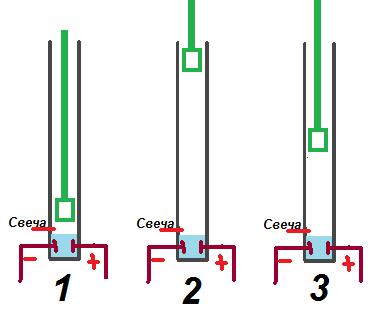 на картинке поршень. Внизу электролит, где вода разлагается на кислород и водород..