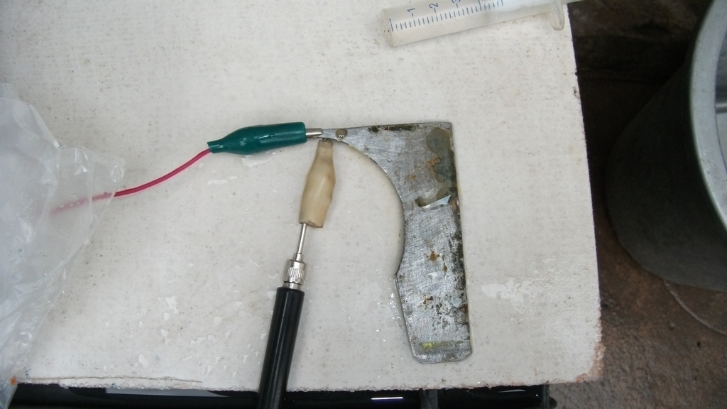 По "многочисленным"😊, просьбам "трудящихся"😊. Сего - дня😊, был произведён пробный пуск "Челленджера"😊, в условиях - максимально приближенным к "боевым"😊. То есть - на улице, погода сырая, временами моросит мелкий дождик. "Автомобиль"😊, был собран из "подручных средств". "Кузовом" - служил небольшой отрезок "железия" - толщиной 1-1,2 мм, тщательно очищенный от краски, при помощи наждачной "шкурки"😊. "Колёсами" - пластиковый ящик, с уложенным на него куском магнезитовой плиты. Источником "первичного электропитания"😊 - АКБ от "бесперебойника". В качестве "истошника" повышенного напряжения, для КАТОДНОЙ "защиты" кузова "автомобиля" - был применён собранный "криворуко и кособоко", блокинг генератор, "запустившийся" приблизительно на 60 - 80 кГц и "умеющий" плавно изменять выходное напряжение от 60 В и до ???, в данном слуЧае я "выставил" - 100 В (приблизительно). "Метёлкой" - служил штырь из нержавеющей трубки длиной - 1000 мм и диаметром - 10 мм забитый в в планету Земля и выполняющий в домашнем хозяйстве роль "контура заземления" для душевого "бокса"😊. В качестве "дороги" - использовалось бетонное покрытие двора, сырое от дождика😎 .