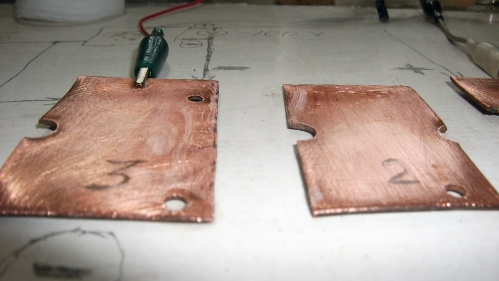 "Поднял" напругу до 200 В (на своём блокинге). Подключил к "катоду" кусок "железия" (кусочек поржавевшей железки от прошлых опытов), паралельно "катодной" медяшке. Буду "посмотреть"😊, чи-то из ентой Хрени получится. "Кондексатор", "выкусил", боюсь - стрелнЁт.