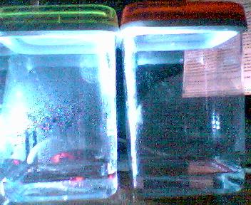 Хорошо видно что одна банка освещена, т.е. к ней подводится дополнительная тепловая энергия от источника освещения. А вторая банка вся в тени и в ней вообще мало что видно, но капли на стенках точно есть.