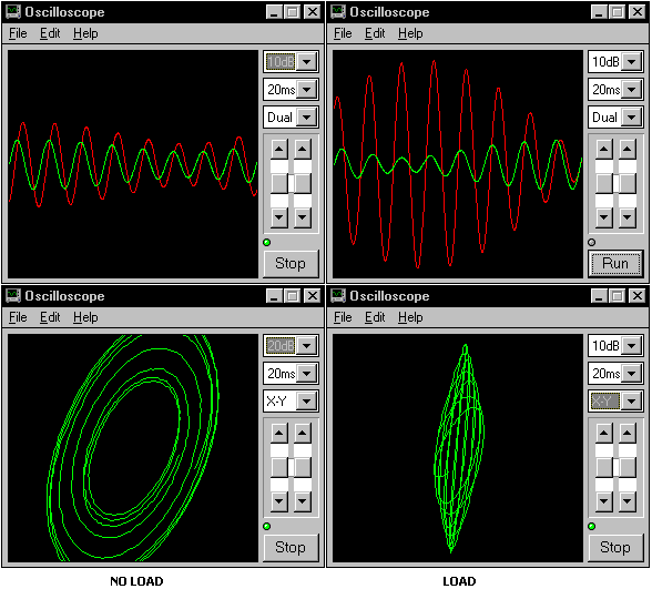 К сожалению времени прошло достаточно чтобы детали подзабылись. Но по картинке получается так: показаны ток и напряжение в одной из первичек, частоты 400 и 380 Гц, биения (по огибающей) 20 Гц, Насчет реакции только одной первички я бы не стал спешить, т.к. симметрия должна соблюдаться. Реакция от замыкания вторичнки видна по фигурам лииссажу, при нагрузке овал становится узкий. Связь первичек была по земле (стерео выход с усилителя акустического центра). Для развязки можно применить пару лишних трансформаторов.