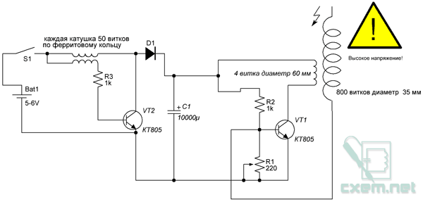 самоиндукция на феррите, питает емкостную индуктивную катшку..