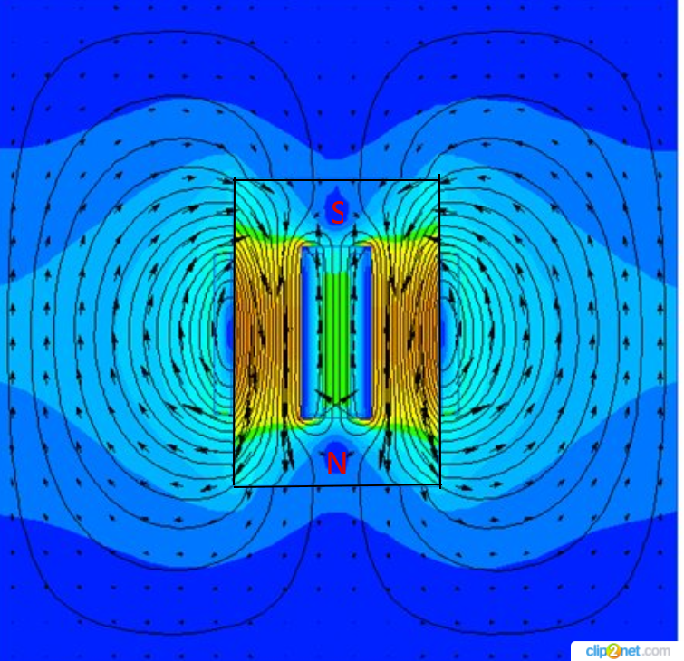 Отсюда и "выпирающие" полюса N и S. Но виток помещенный на керн в эту область не даст ЭДС потому что ЭДС может быть наведена только если через витки катушки есть dФ/dt или грубо говоря домены - магнитные стрелочки колеблются.