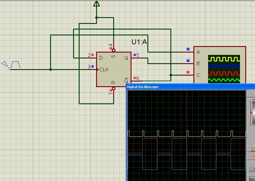Проблема такая - есть короткий импульс надо получить скважность 50 проц с делением на 2 на 1 -2 х корпусах логики без процессора , пробовал на D триггере не выходит - отдаёт такой же короткий импульс 😀