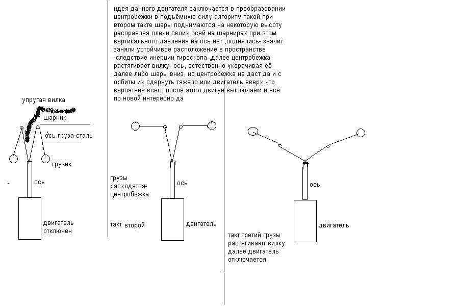 Как много всего понаписали, а ведь принцип загадочного двигателя очень прост. Две катушки с током (эл. магниты) взаимодействуют (расталкиваются или притягиваются). Что мешает сделать одну из двух взаимодействующих катушек "ненормальной"? Одну катушку намотать обычным проводом, а вторую "намотать" из голых электронов, ионов, плазмы. Будут такие катушки взаимодействовать? Конечно! Как "наматывать" такие "странные" катушки изложено в 22-м параграфе Ландау, Лифшиц "Теория поля" (Том2, 1962г. Физматгиз). Такую "катушку" "наматывает" любой магнетрон в СВЧ печке. Это электронно-плазменный ротор между анодом и катодом. При взаимодействии обычной и "странной" катушек обычная будет двигаться вдоль своей оси, а вот элементы "странной" катушки после взаимодействия будут разлетаться в стороны ПЕРПЕНДИКУЛЯРНО оси движения обычной катушки. Для непрерывности движения необходимо все время "наматывать" странную катушку под обычной. Странная катушка будет довольно ярко светиться (это же плазма).Двигатель в действии будет выглядеть как движущийся плазмоид. Взаимодействие таких катушек (простой и плазменного ротора) не такое уж простенькое, как может ОПРОМЕТЧИВО показаться. 22-й параграф Ландау это лишь "первая страница букваря" на пути создания таких двигателей на Земле. Это все "цветочки", а вот и "ягодка". Что делать с нелепым понятием "гравитация"? Это же фундамент Земной науки. Помогите ее куда-нибудь "воткнуть" в прилагаемом файле!!!