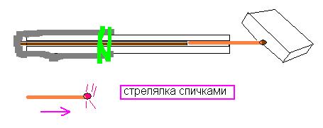 Смысл - спичка утапливалась в трубку со штоком и чиркаласъ об коpобок. Pезинка выталкивала горящую спичку в полёт .