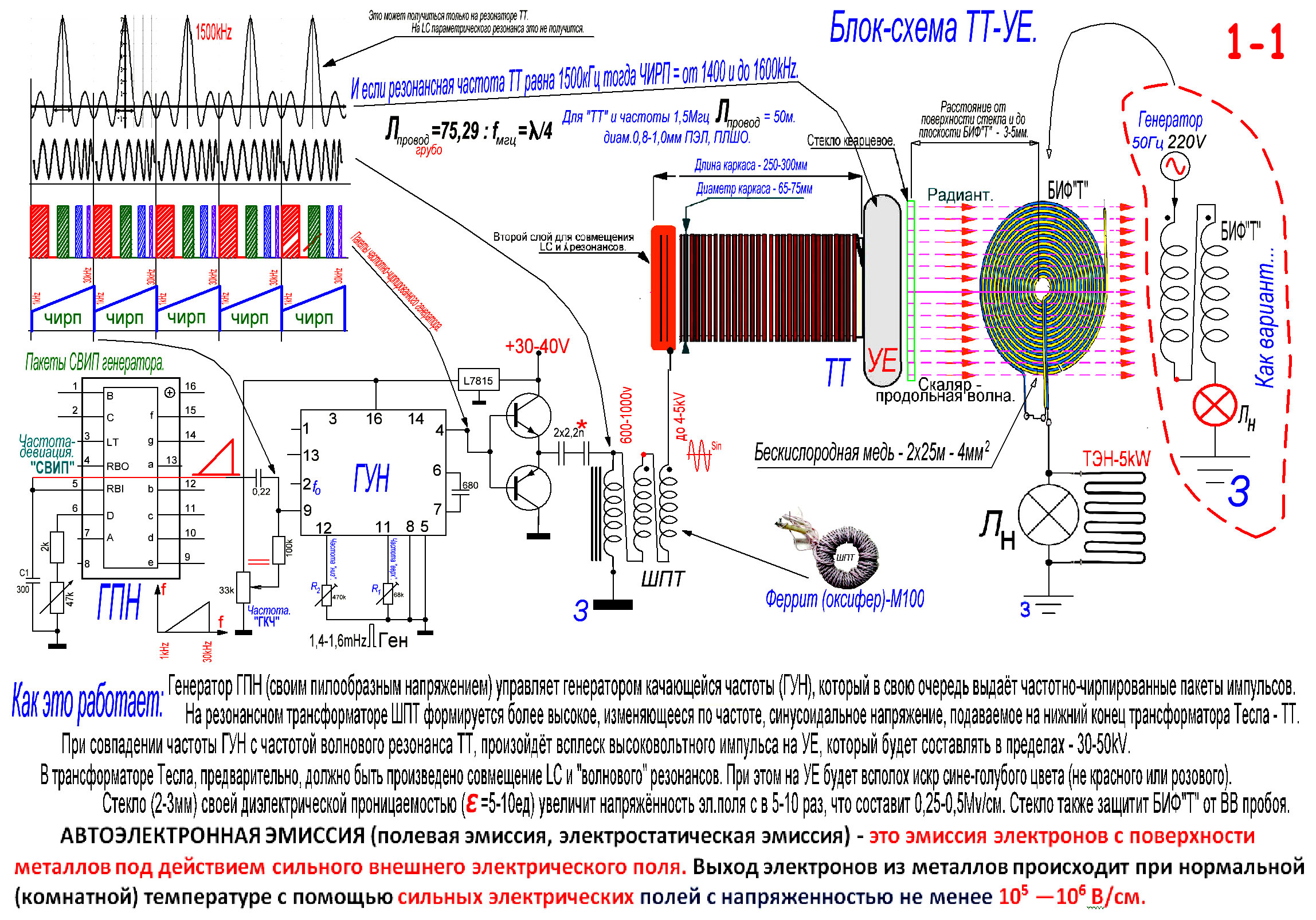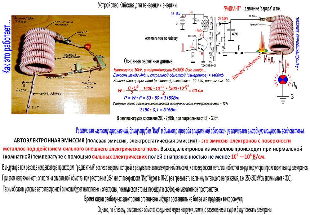 Интересная схемка ! Особенно транс ,, попробую при случае . Теория, конечно, не для меня - я сторонник халявной энергии , а автор предлагает автоэлектродную эмиссию .