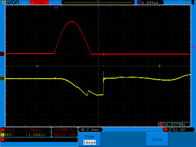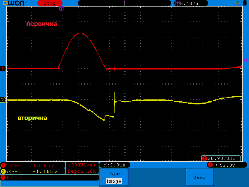 Вот обычный разряд с катушки зажигания- смотрим на минусовом конце-