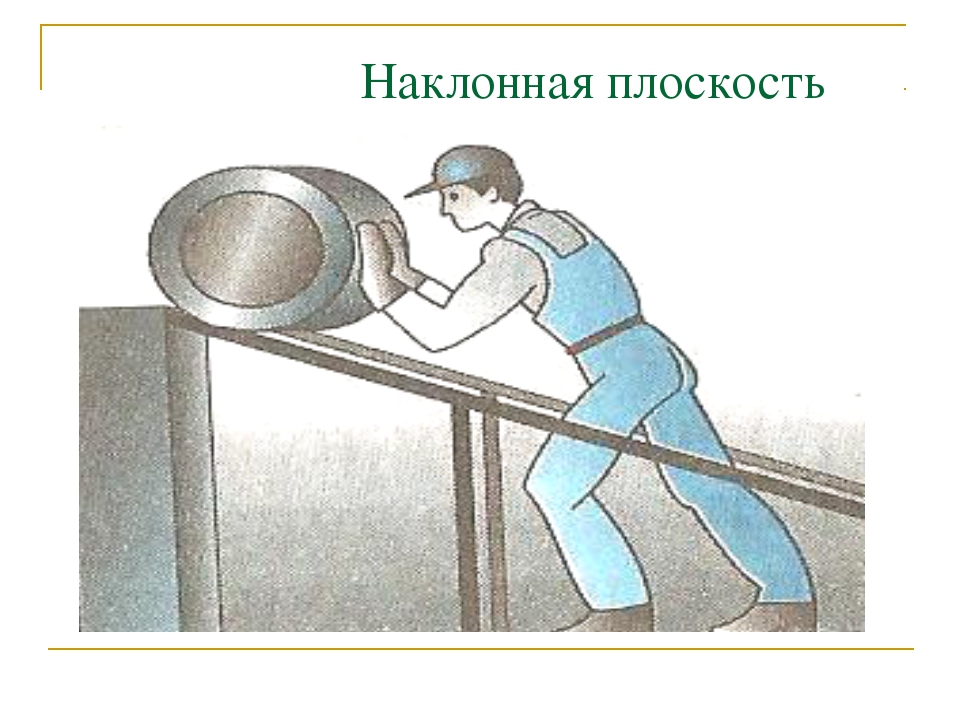 Чем меньше угол наклонной плоскости, тем меньше усилий нужно затратить на подъём груза. На закатывание колеса это тоже работает.