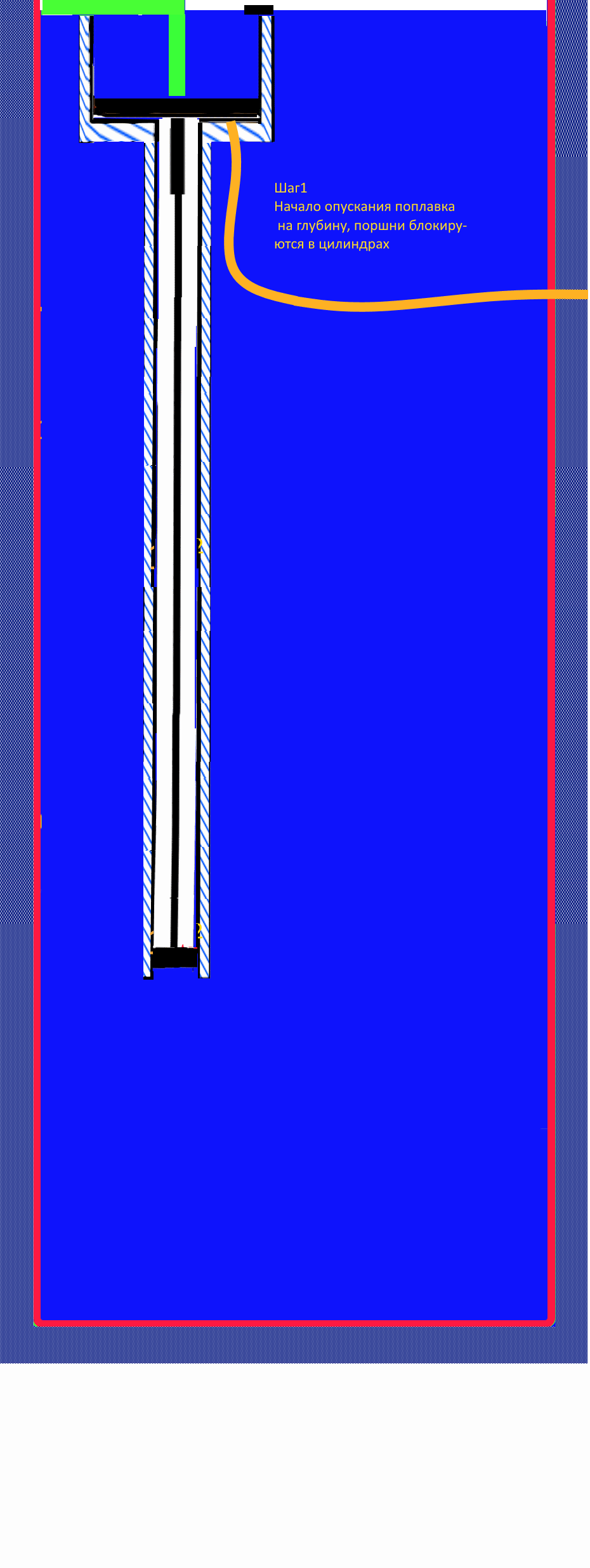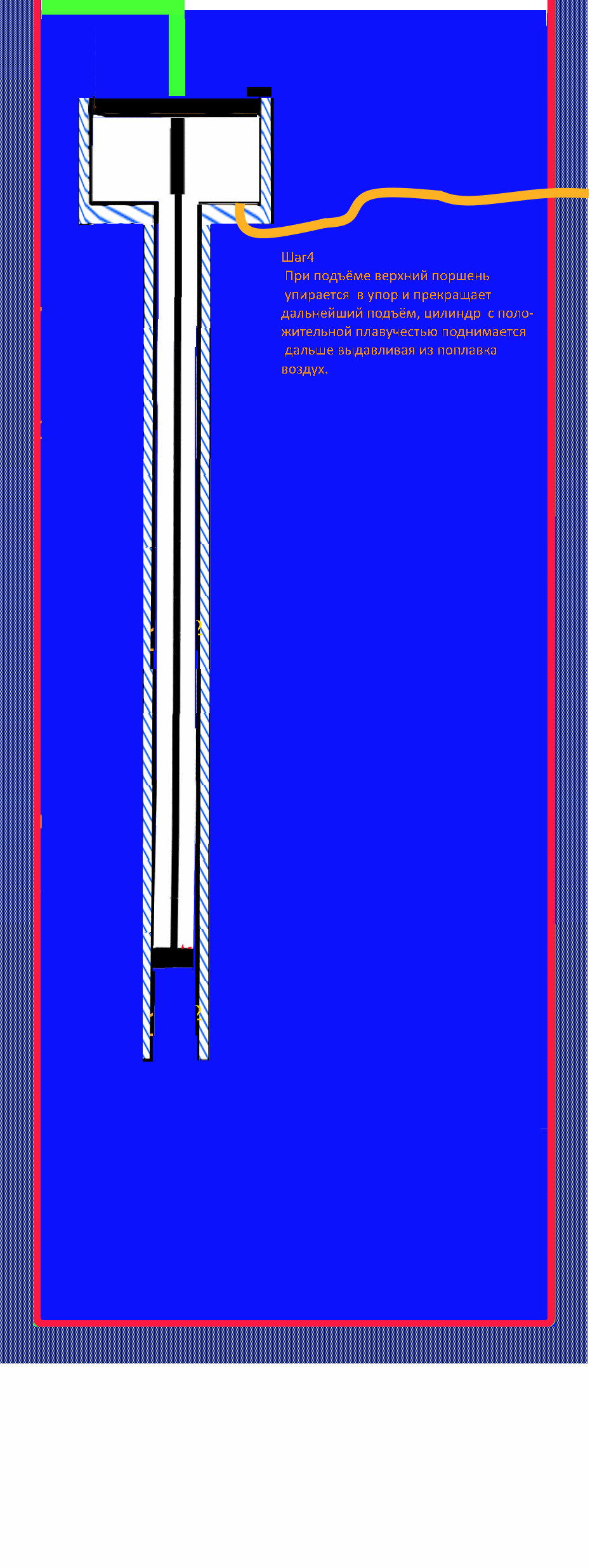missioner Шага 3 не произойдёт т.к. атмосферное давление уравновесит силы между верхним и нижним поршнем внутри поплавка. И надо учитывать гидростатику, высота столба жидкости давящая на нижний и верхний поршень и с этим учетом и так система равновесная. Если сделать через систему рычагов и два не сообщающихся между собой поплавка то возможно какая-то абракадабра и выйдет. А так это полная шляпа. Сайрус зря с вами связался, мутные вы типы.