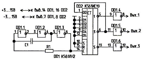 Есть такая потребность, уже созрела и перезрела! Думаю, надо делать отдельным прибором, а то при экспериментах может комп. наводками выбить. Что если соединить последовательно три ждущих мультивибратора? Могу предложить принципиальную схему, только на дискретных элементах. Желательно бы собрать на доступных микросхемах с малыми токами потребления. Может у кого-то есть готовые схемные решения. Чем хороша идея со ждущими мультивибраторами – можно реализовать вариант 2-х фазный, 3-х фазный, 4-х фазный и т.д. и при этом регулировать длительность каждой фазы независимо от других.