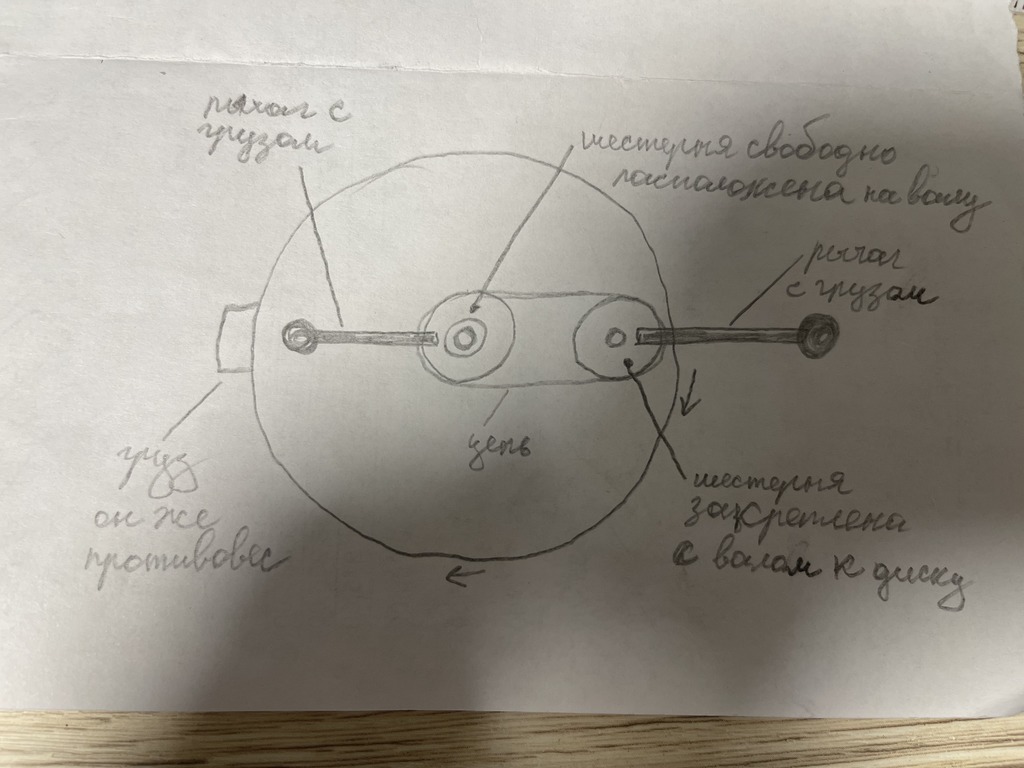 Также должно присутствовать понимание что есть много подводных камней один из нюансов это определить вес грузов с рычагами по отношению к весу корпуса маховика и это относительно от оси до обода маховика должны быть точно известны параметры. Можно грузы сделать из пенопласта, а можно и корпус маховика изготовить из поликарбоната и в обоих конструкциях это не принесёт желаемого результата.