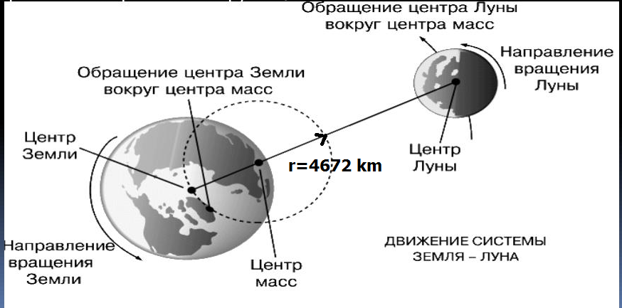 Простой пример- вращение в системе луна-земля. Барицентр системы в 4600 км от центра земли и ее колбасило бы в течении месяца вокруг этой точки на такую величину, если бы было притяжение между луной и землей.
