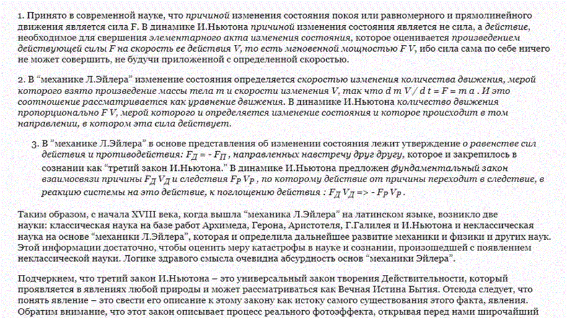 В переводе Эйлера и во всех учебниках, в том числе и в тех, по которым дед учился - третий закон провозглашает равенство сил противодействия и действия. При этом получилось, что третий закон повторяет первый, о равномерном движении? когда сумма всех сил равна нулю. У Ньютона третий закон - о ДЕЙСТВИИ как причине движения и о ПРОТИВОДЕЙСТВИИ, как следствии. Отсюда Fd * Vd = Fa * Va