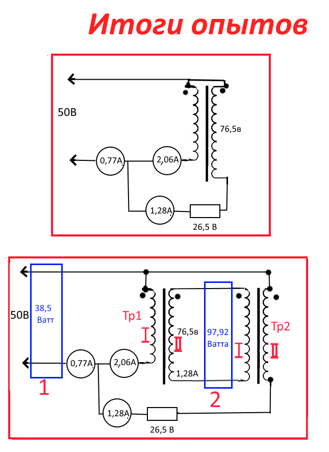 Картинки в которых использован только один трансформатор не пустые а сделанные на основе реальных опытов, ты же видишь фото опытов Токарева и на видео мой опыт. Просто я сегодня придумал как можно СЕ вытащить и сразу нарисовал как нужно схему переделать.