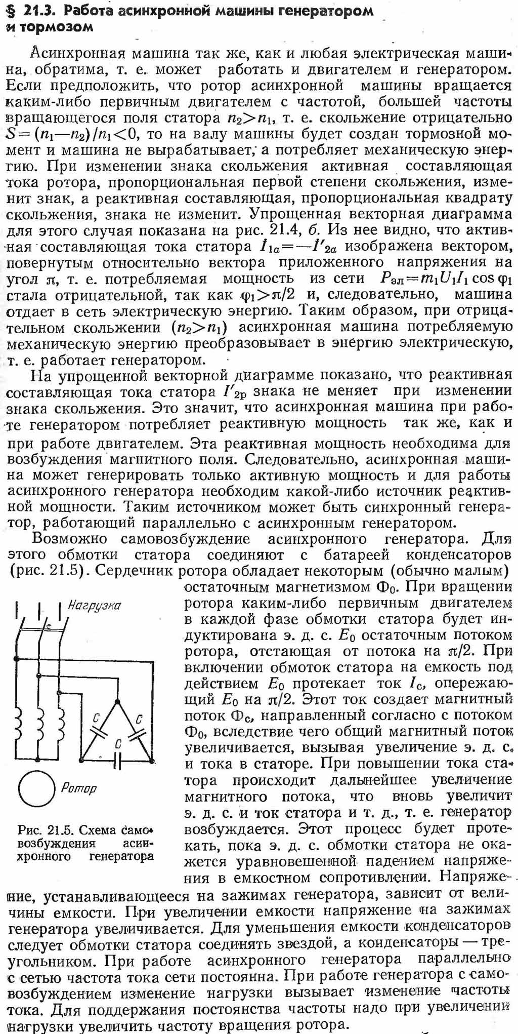 У ротора асинхронника имеется остаточная намагниченность, после работы в кач.двигателя. Только имеет ли она отношение к генерации. Насколько помню асинхронник работает как генератор только при наличии реактивной мощности: либо будучи подключенным к внешней эл.сети, где она уже имеется, либо в автономном режиме, когда реактивная мощность извлекается из резонансного LC контура, но требуется батарея конденсаторов (для частоты 50 Гц сопоставимая по габаритам с самим движком). Что по видимому и предлагает kazak.