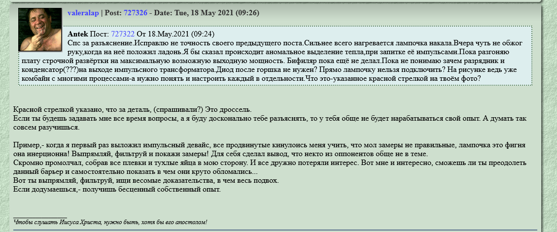 ВАР,где ты там увидел подсказку, спосил,что за деталь видна на фото,на которую никто внимания не обращает.Я уже обьяснял,вникаю в технологию получения прибавки,вернее дармовщины в скромных размерах используя современную элементную базу,как и все тут.