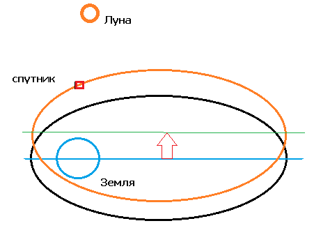 Там русским языком сказано- спутники движутся по геодезическим линиям пространства а не вокруг центра.