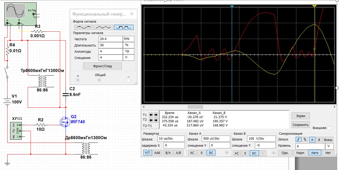 Касаемо твой схемы и лишнего трансформатора. В реали это будет обычный дроссель. Поэтому на колебательном контуре должны быть повторяющиеся гармонические сигналы. И я не понимаю смысла в твоих действиях.