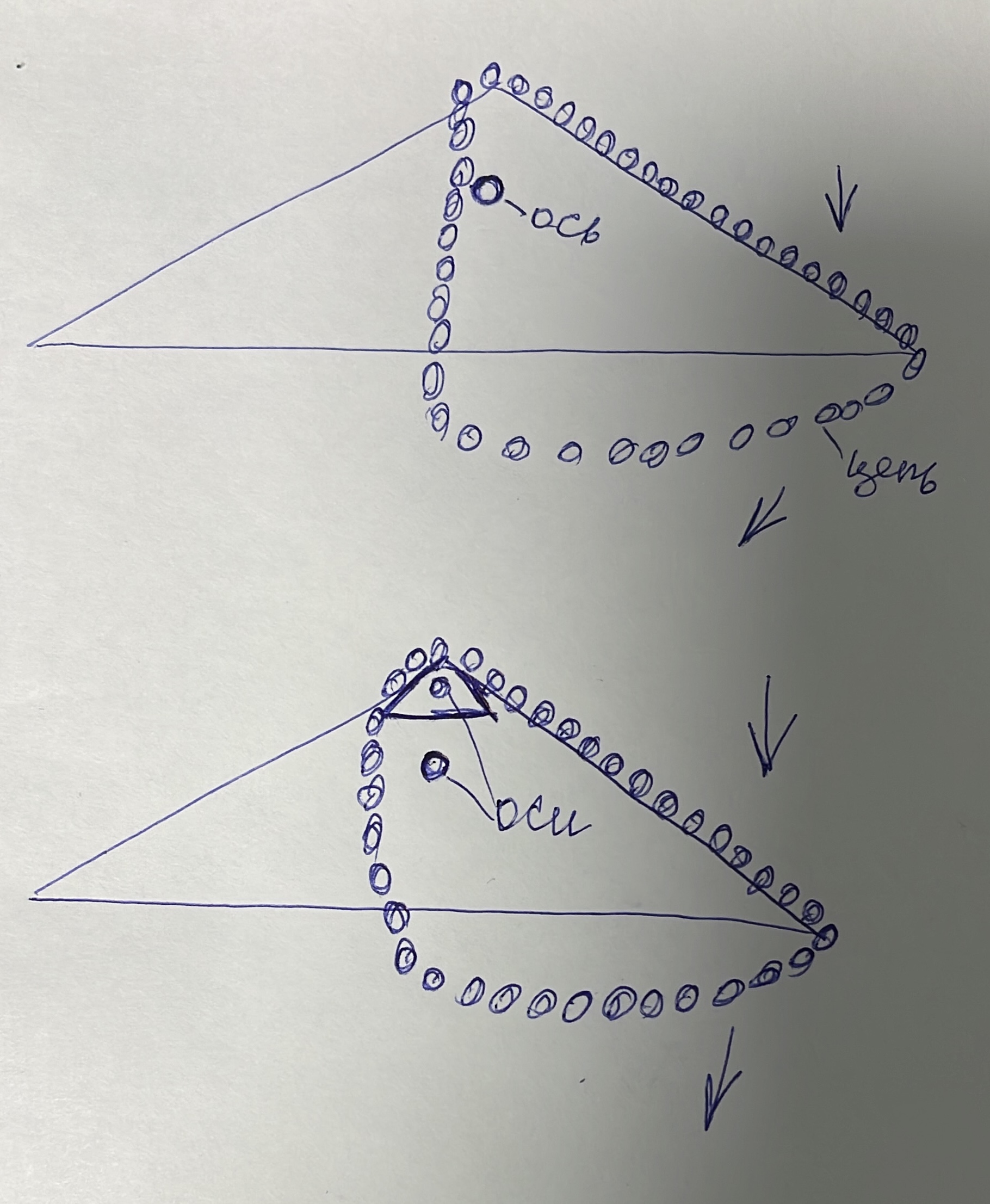 Поэтому исправляюсь и треугольник большой и малый находятся в равновесии. Малый на нижнем рисунке это как и понятно аналогия малого колеса и как полагается не прикреплено к большему а находится на своей опоре ну и давайте посмотрим кто кого перетянет малый треугольник или большой треугольник?