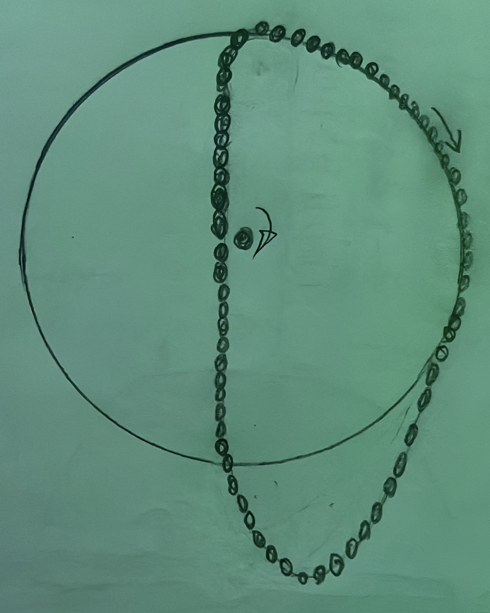 Смотрите рисунок где цепь лежит на одной половине колеса а другая часть цепи весит вертикально. Вы согласны что колесо проверяется под действием веса цепи? Конечно цепь упадет ну это пока неважно😊