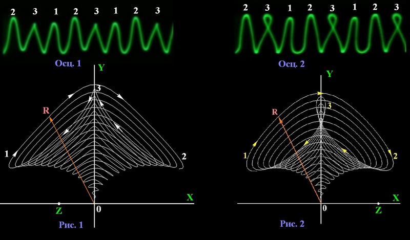 Благодаря гироскопическому эффекту процесс "выдувания-переизлучения" нового солитона-вихря сопровождается его "мгновенным" поворотом в узловой точке волны вокруг своей оси на 90˚