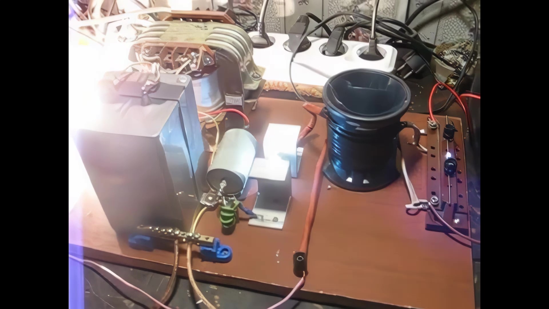 Параллельно резонансному контуру подсоединить лампу на 500вт и осциллограф для крнтроля процесса в крнтуре. Ваша задача получить синусоидальные колебания в данном контуре и подсоединеной нагрузкой, тоесть лампой. Для этого брал источник примерно около 300в и заряжал разные по емкости конденсаторы и разряжал на цепь паралельного контура. Тут вас ждет разочарование, притом полное.