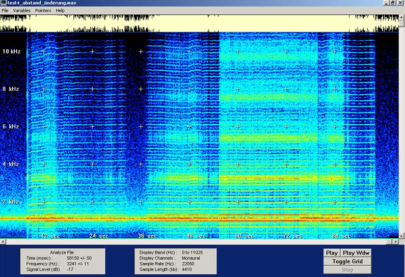 Выставляю также спектрограмму, менял положению излучателя дальше-ближе, право-лево, все вроде излучается как на картинке у Бедини! По краям картники видите спектр когда моторчик выключен - есть какой то модулированный ¨типа случайный сигнал¨ на частоте 1070Гц, не знаю откуда. Его несущую можно менять сопротивлением Rf на операц. усилителе, но модуляция от этого не зависит...