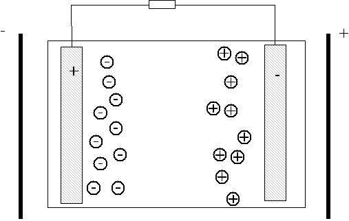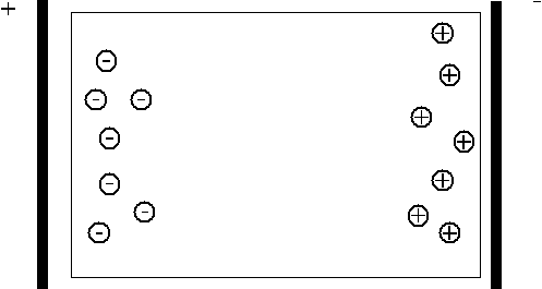 Изобразите пожалуста как по вашему должны вести себя ионы электролита с электродами при наличии внешнего поля? У меня еще на первом рисунке однозначные ионы и заряд на электродах были нарисованы на одной стороне. Мое мнение - не могут ионы в электролите которые как и электроны в элетродах являются сободными зарядами не участвовать в компенсации внешнего поля.