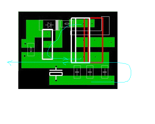 Кстати, длинная стрелка влево - это что? Туда большого тока нет.Приходящую землю и питание можно заводить хоть по ПЭВ-0,1 мм, и припаивать куда угодно, по нему течет средний ток, он при частоте 1 кГц небольшой.