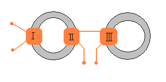 Пример услиления сигнала по мощности х2(минимально возможный) без влияния нагрузки на входное кольцо и без учета потерь (следует учесть, что на центральном кольце по рисунку магнитное поле удвоенное, и если насыщать кольца до предела - это кольцо нужно делать двойного сечения)