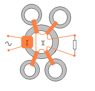 Кстати закороченную катушку можно рассматривать как 2 обмотки на каждом из сердечников по отдельности и соединенных паралельно. То есть на выходную обмотку сажается в качесте нагрузки точна такая же индуктивность.