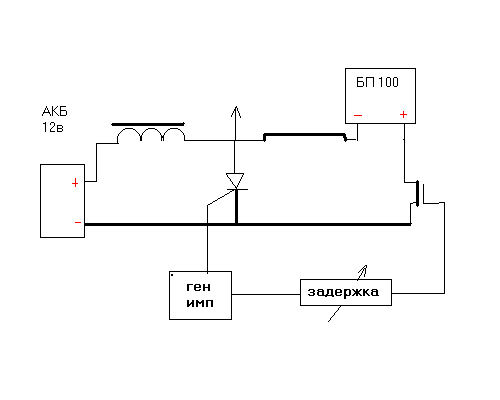Сначала генератор импульсов запускает тирристор,
