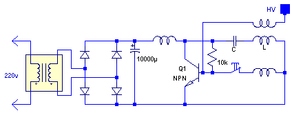 Базу можно цеплять и на холодный провод HV но тож ризковано особенно если дальше умножитель ставить, с некоторыми транзисторами можно вобще базу оставить в воздухе висеть для запуска к ней достаточно пальцем коснутся.