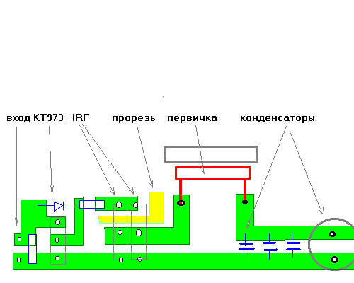Не, я не про это говорил... Первичка у транса должна образовывать с ключом и электролитом как можно более короткую петлю тока.