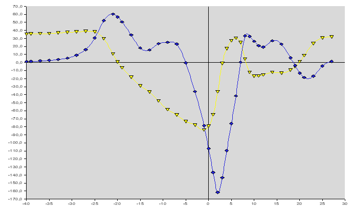 Что показало интегрирование на участке от -40 до 27... Работа якоря составила -366,85 Джоулей. Т.е. сбалансированности нет. Работу сил статорных магнитов не исследовал - пока это не имеет смысла, хотя может помочь в дальнейшем. На протяжении 1 метр 1 элемент якоря выработает примерно 1,5 ватта энергии. При наличии 10 секций якоря это будет 15 ватт (в идеале). При оборотах примерно 10 с-1 это составит... Я боюсь дальше считать.😏