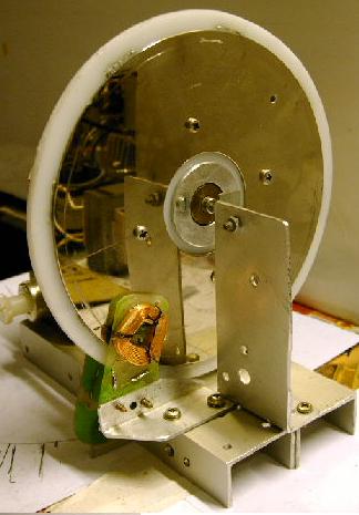 Вообщем получился какой то несуразный радиотехнический фильтр.. - на фото мех/ген , в качестве обмоток применены обмотки от движка считывателя дискеты БЕЗ СЕРДЕЧНИКОВ. Приемущество - без загрузки обмоток дв. не нагружается и т.к. нет сердечников то нету механической нагрузки на преодоление МП диска.