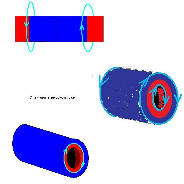 да я и сам не понял, где Эдвард такие магниты нашёл. Как их изготовить - даже не предсталяю. Твой верхний - это два обычных цилиндрических, сложенных с конфликтом по центру (на отталкивание). Теоретически, наверное, можно намагнитить как у Эдварда. Но я таких не встречал магнитов. Есть какие-то гибкие магниты, для транспортёров делаются, но я думаю, это левый вариант.