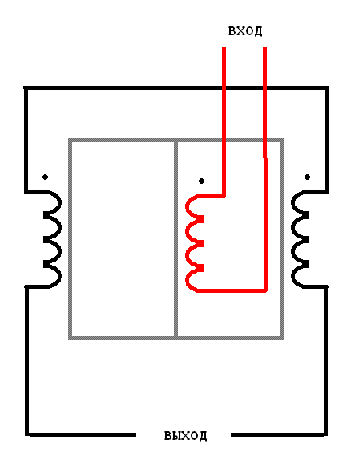 На следующий день , - торкает мыслишка , - ну хорошо , на одном керне не загудело , а на 2-х крайних - если обмотку разнести ??? тут же включается внутренной голос - " разнос обмотки по кернам приведёт к уменьшению взаимосвязи между плечами т.е. ТЕМ БОЛЕЕ НЕ ЗАГУДИТ !!!!"..